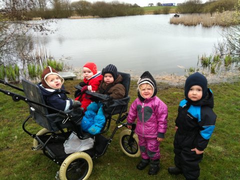 Billedet til højre er taget på en af vores utallige gåture i lokalområdet, med den skønne klapvogn, hvor de små kan sidde og de store kan gå.